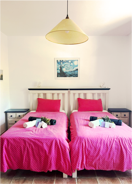 • 2 Zimmer mit Doppelbett, Dusche, WC