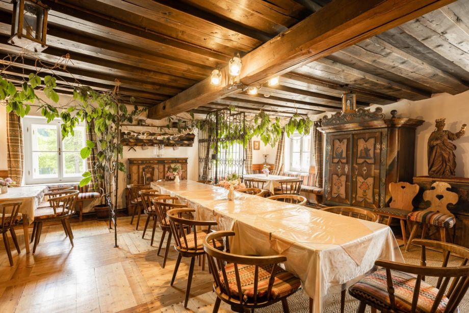 Im Haus finden Sie noch einen großen Aufenthaltsraum, unsere Stub'n, in der all unsere Gäste Platz finden und gemeinsam ihr Essen zubereiten, sowie gesellige Stunden in gemütlicher Atmosphäre verbringen können.