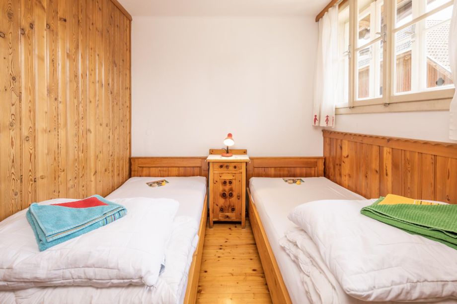 Aufteilung: 2 getrennte Schlafzimmer, eins mit Doppelbett + Einzelbett, das andere mit 2 Einzelbetten
